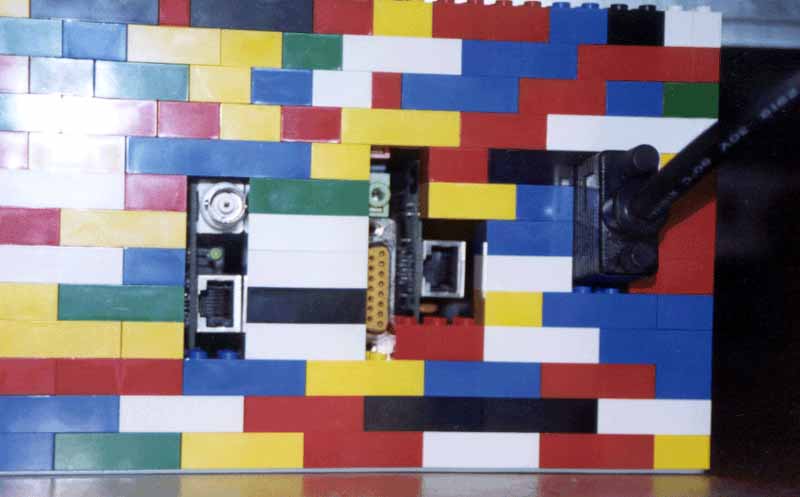 A view of the peripherals connectors. From left to right: network, sound, modem, video.