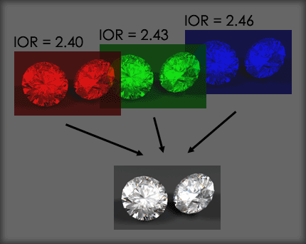 explanation) and an appropriate IOR for diamond. Two of these gems were placed